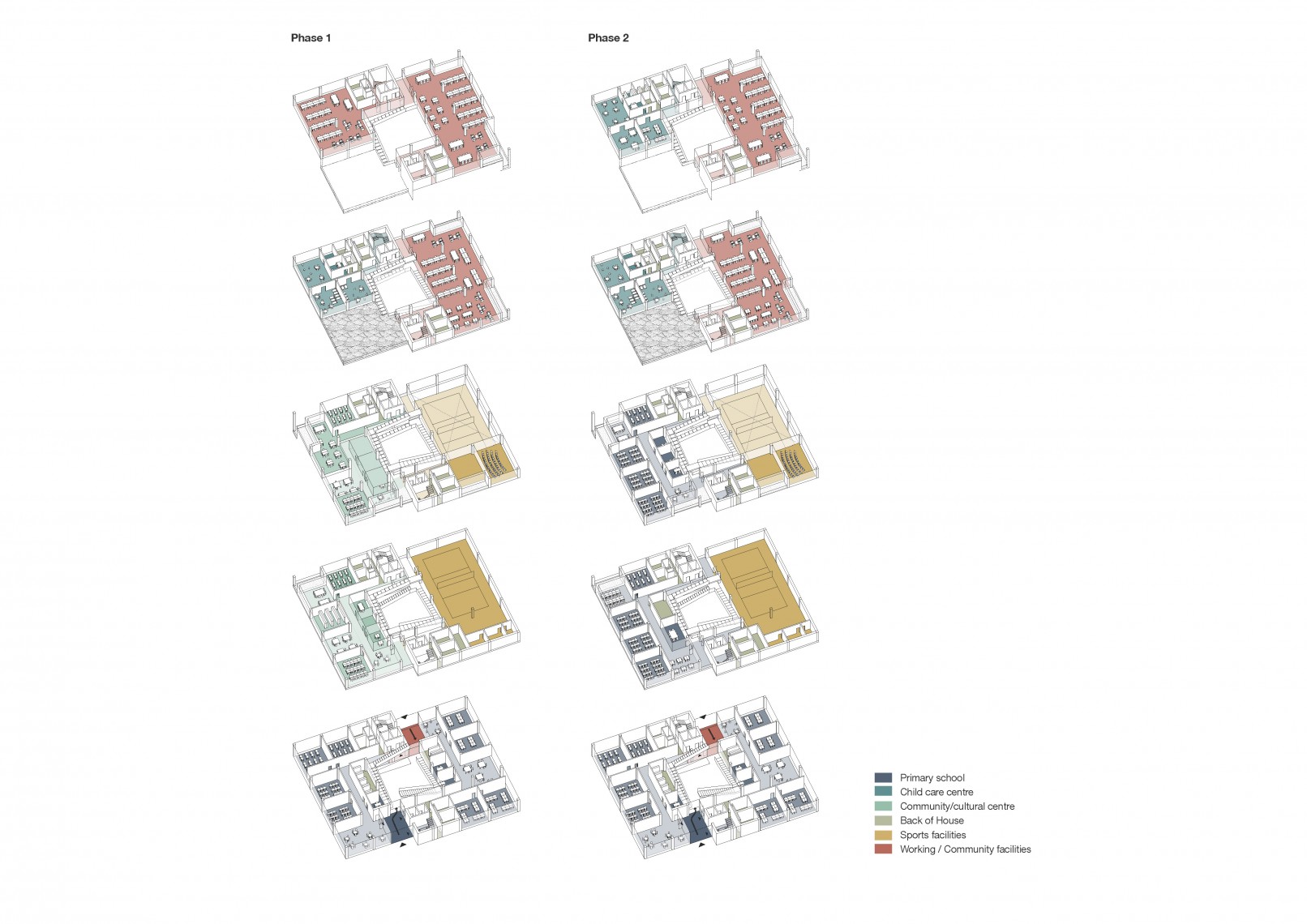 As part of Sluisbuurt Masterplan feasibility study sukunfuku studio developed a second prototype for an adaptable multipurpose building, that could be used in a different plot and serve as a container for varied programs.