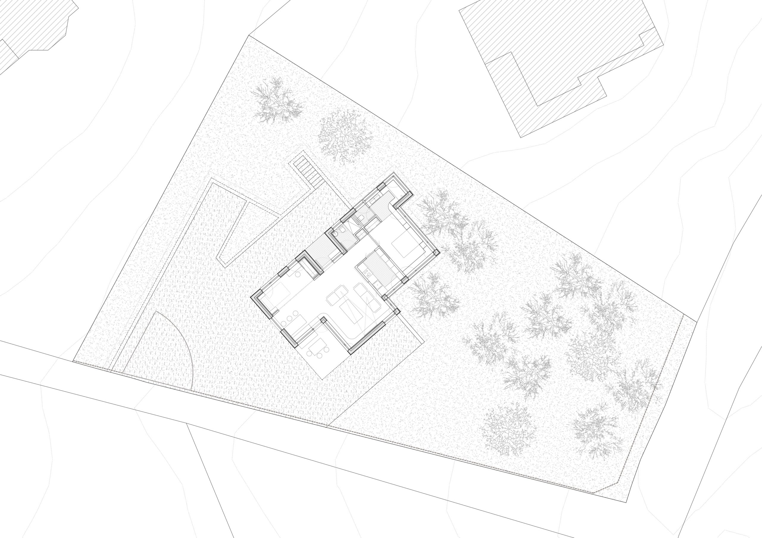 A small 70 m² holiday home that plays with the topography of the site.