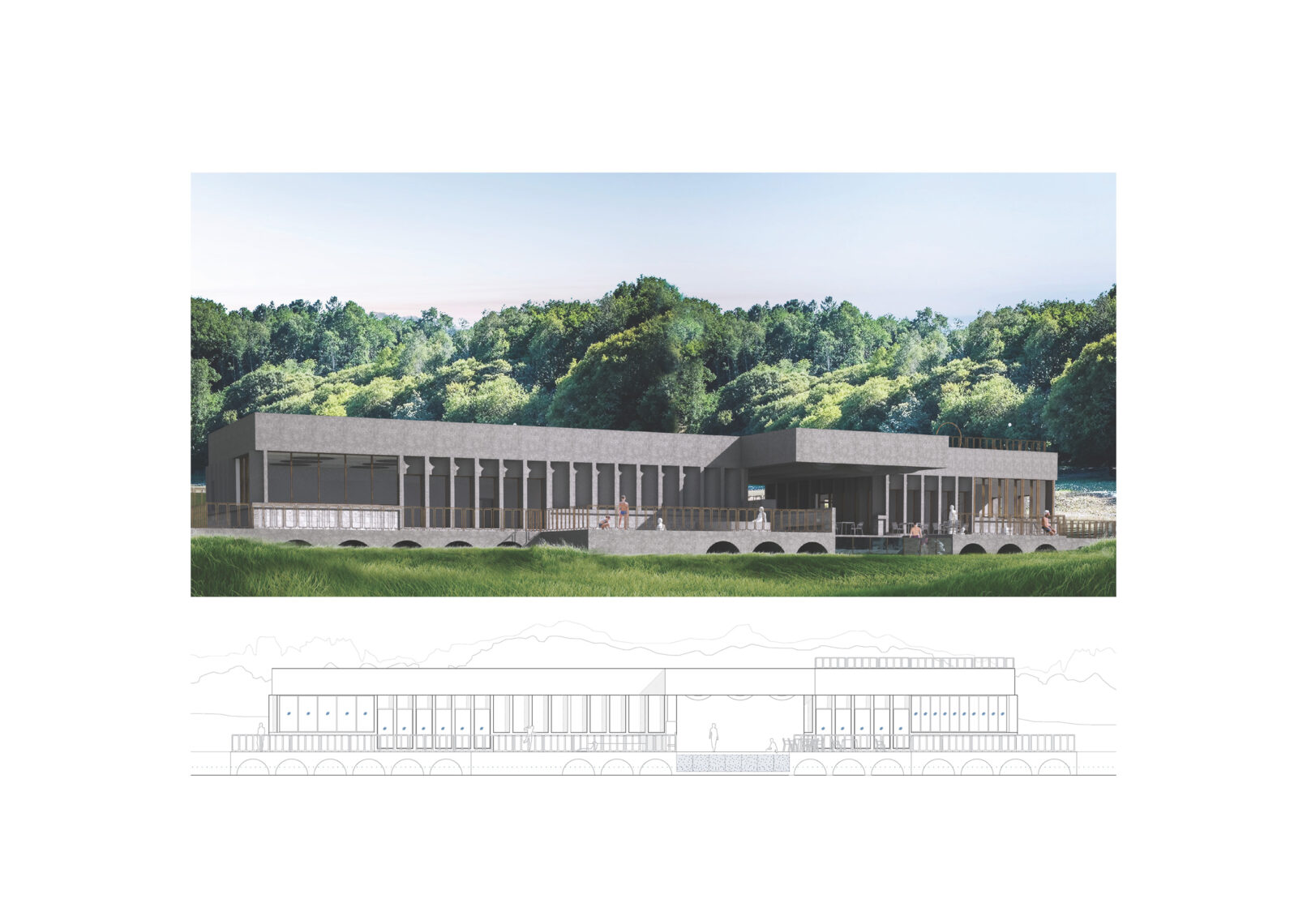 El proyecto se ubica en un entorno excepcional, Porto Quintela, en el municipio de Bande, Ourense. Una zona con presencia de aguas termales, disfrutadas desde la época Romana. Muy próxima al área de intervención se encuentran los yacimientos de “Aquis Querquennnis”. Todos estos condicionantes conforman las pautas para un diseño que se mimetize con su entorno, y sea extremadamente respetuoso con el mismo. Se busca un marcado carácter de atemporalidad.