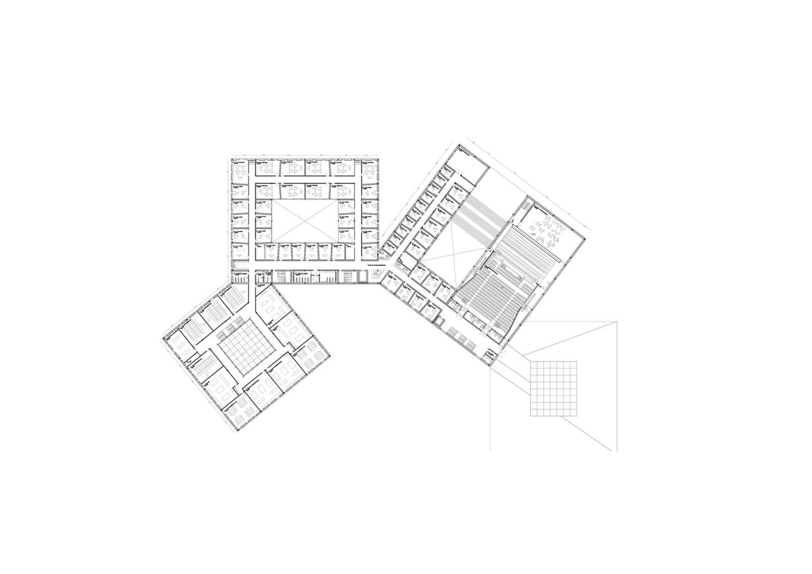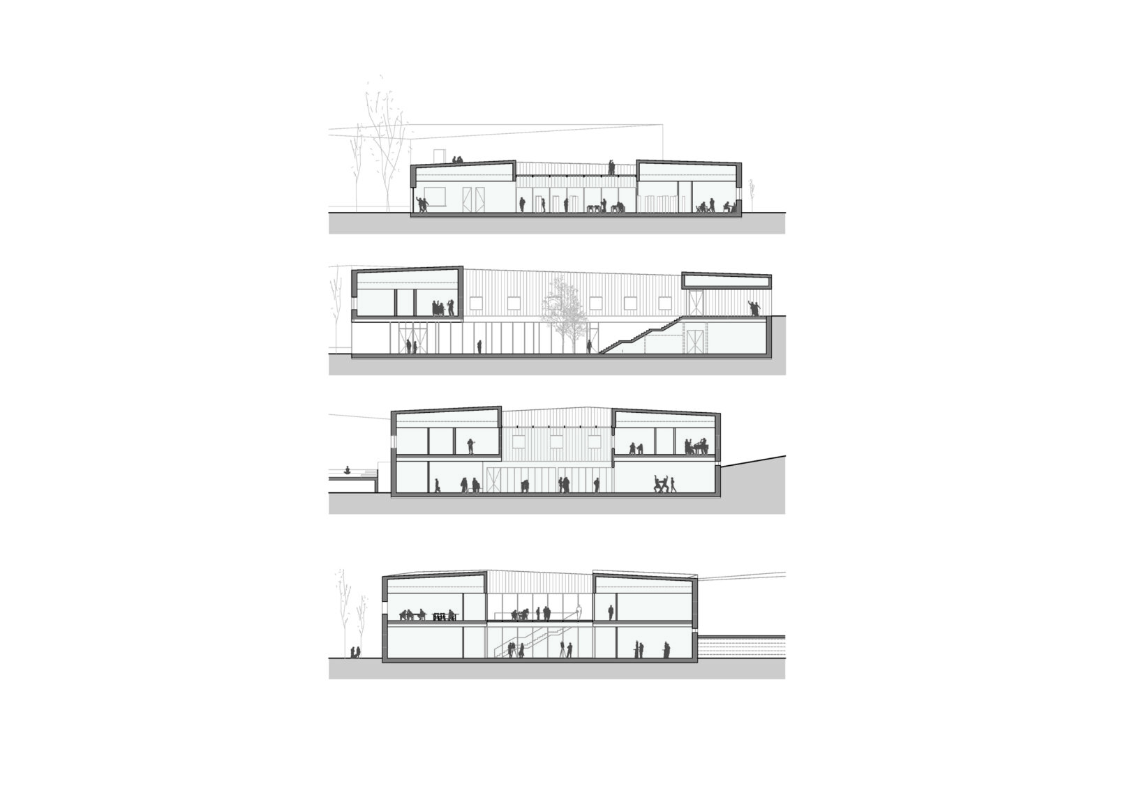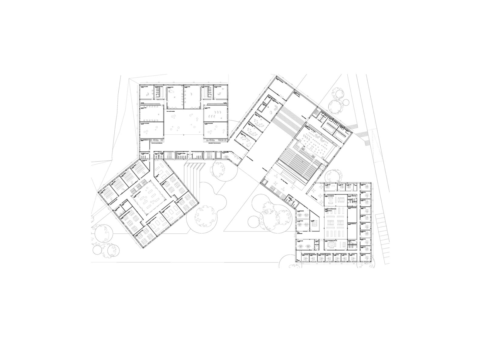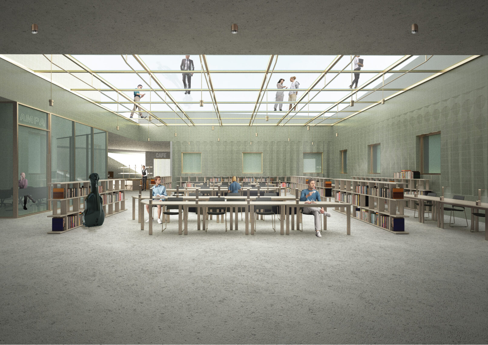Los distintos volúmenes se dimensionan y articulan buscando el funcionamiento óptimo del conjunto, pero también el aprovechamiento de la parcela y la relación del edificio y espacio público, con su entorno.