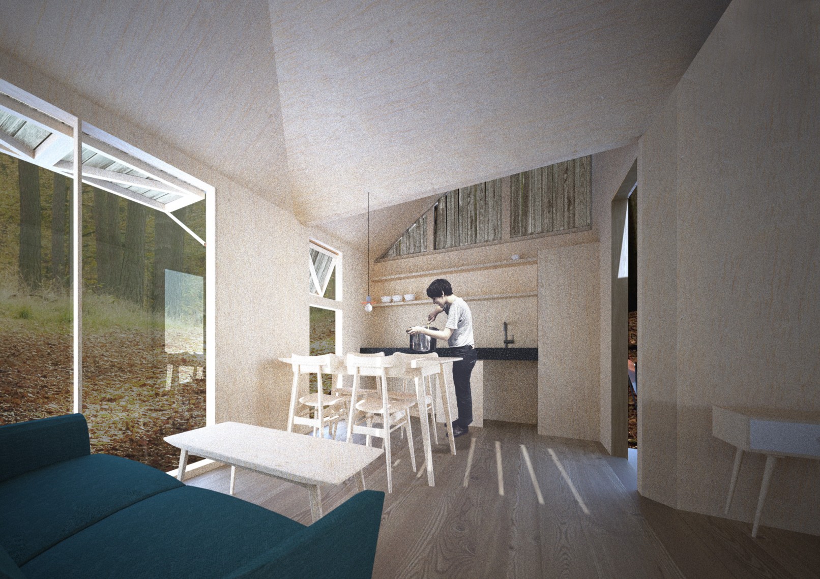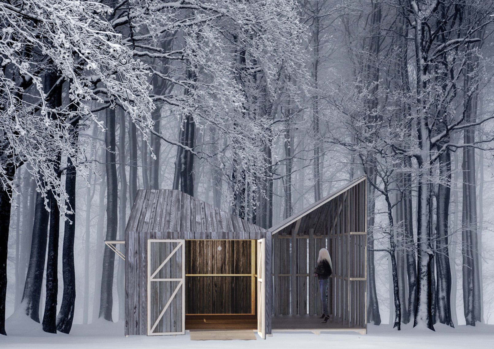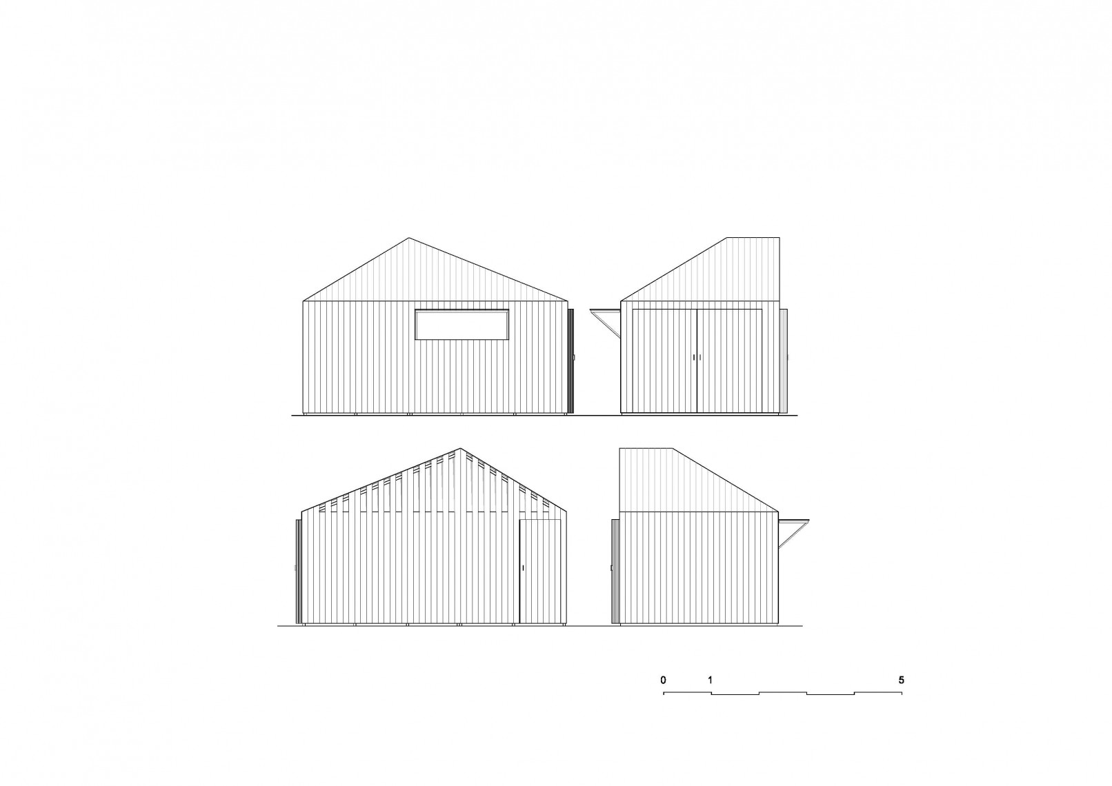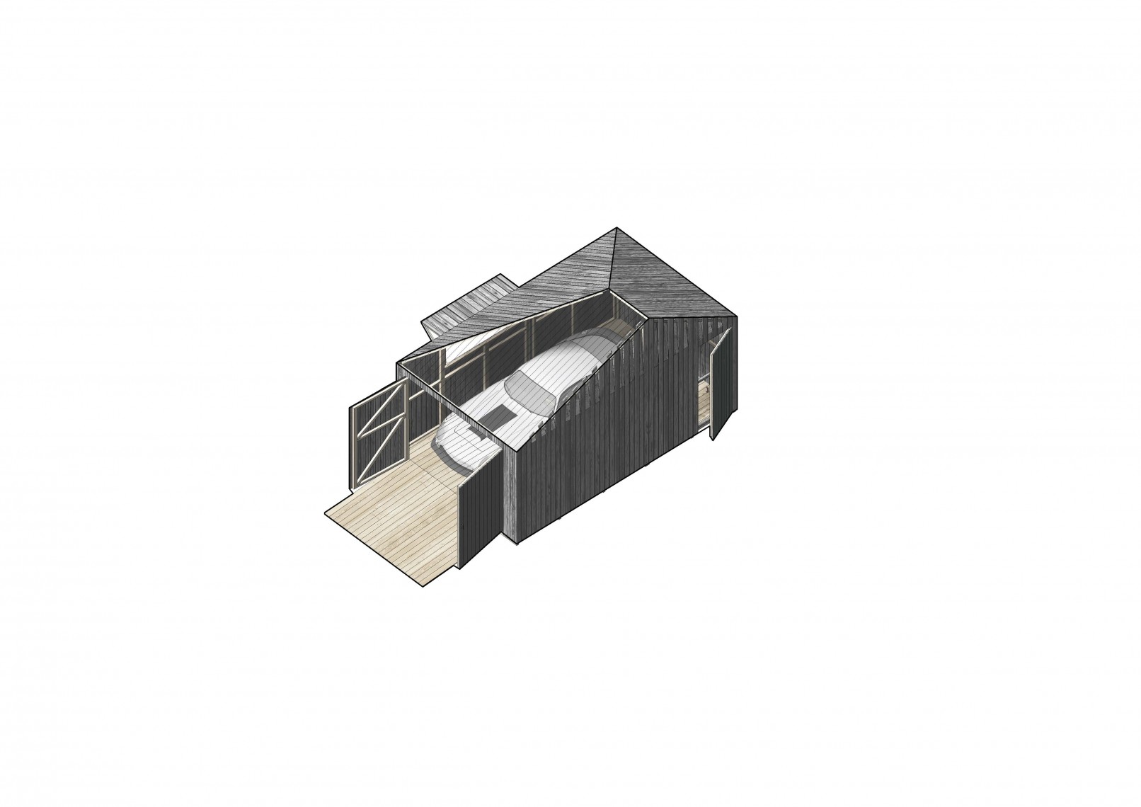 The competition brief asked for new designs using a prefabrication system able to produce from a play house or storage unit to a weekend home. The proposal presents a family of prefabricated elements, all created from the combination of three different modules, containing the same geometry.