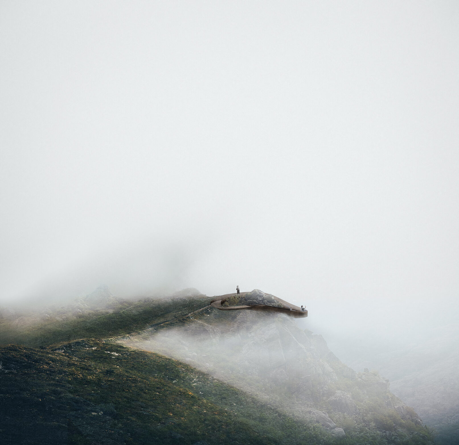 Proponemos una construcción adaptada a un entorno sumamente particular, considerando las circunstancias actuales y las expectativas y usos de los visitantes. Las formas sinuosas, que se amoldan a la montaña, se acompañan de una paleta de materiales que armoniza con el entorno. Los paramentos verticales que protegen a los visitantes de la caída se resuelven con chapas de acero cortén, mientras que los pavimentos replican la tonalidad gris de la roca y las gravas existentes. La geometría del mirador permite aprovechar al máximo el valor del emplazamiento y disfrutarlo de diferentes maneras