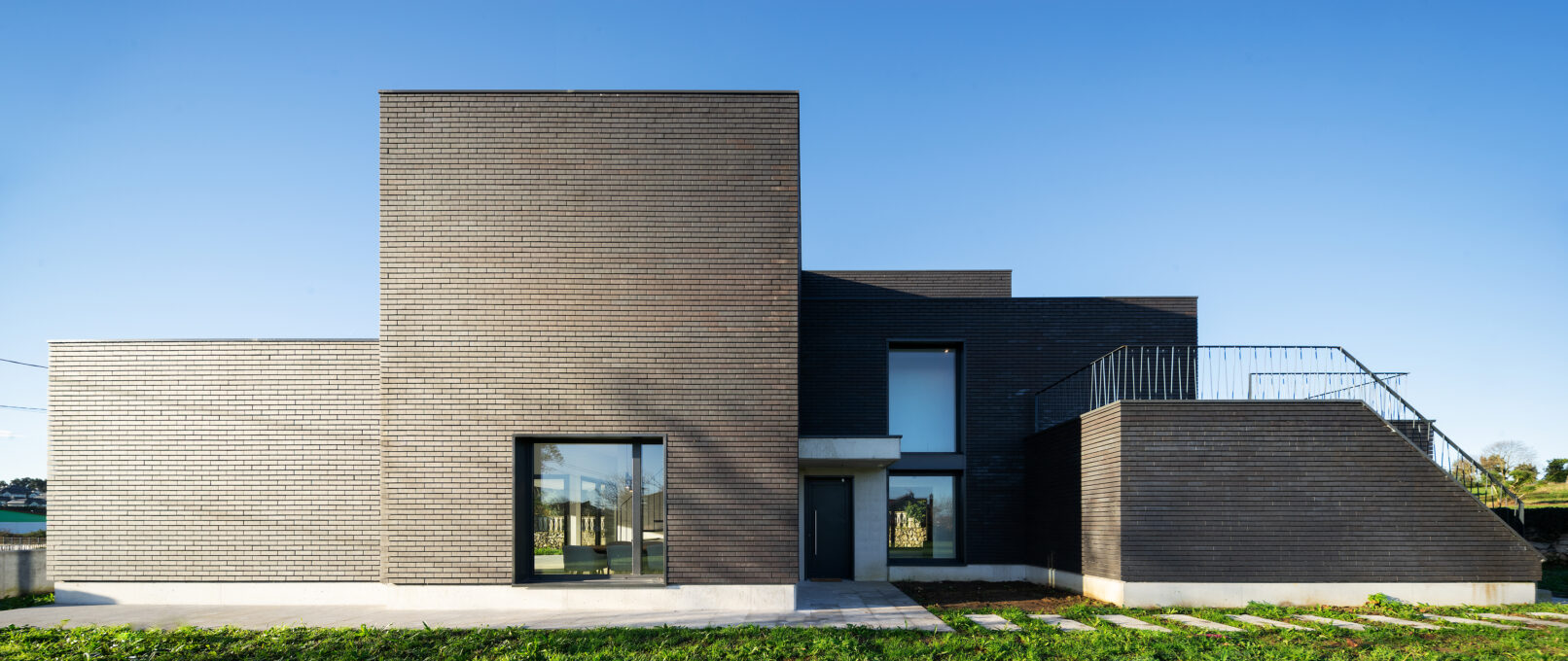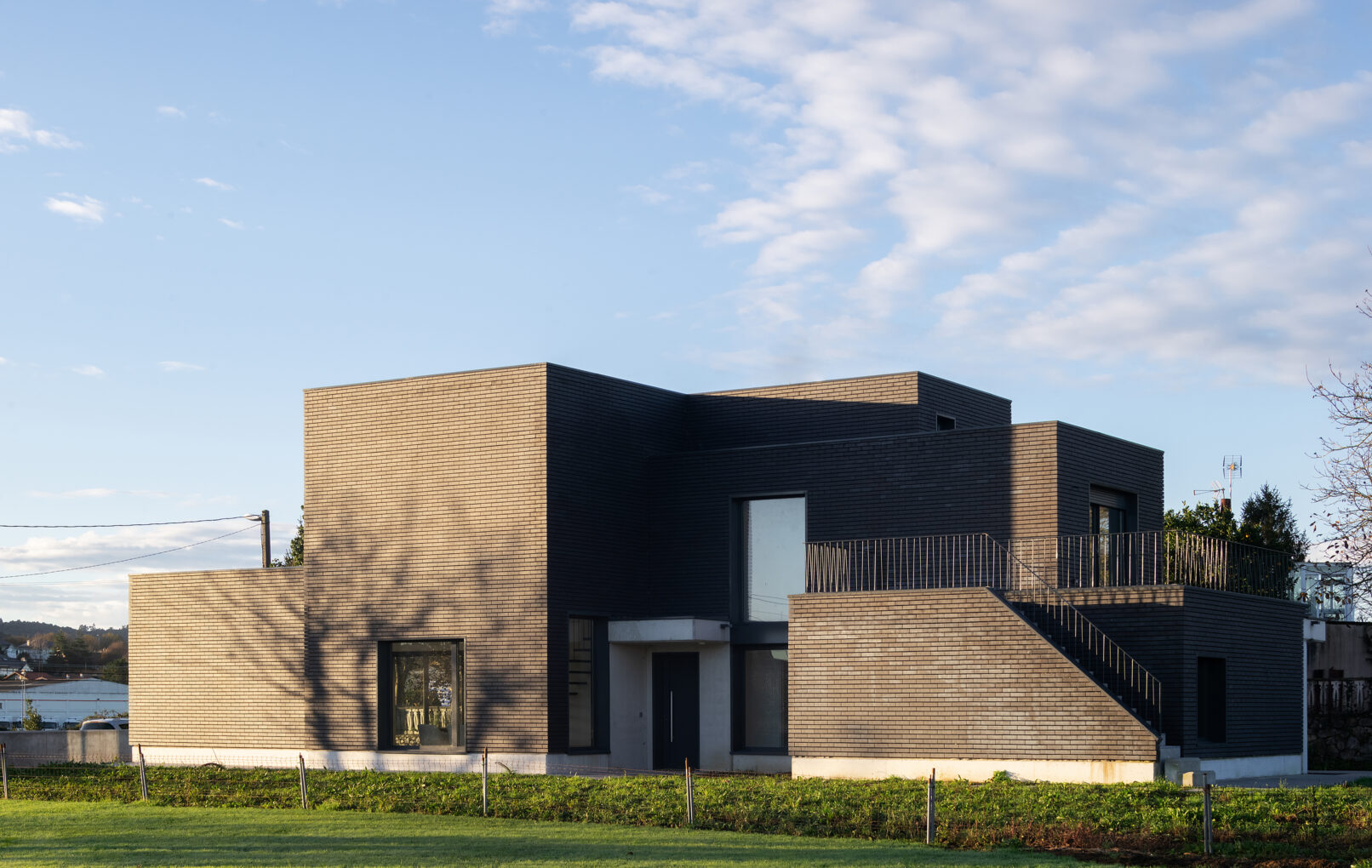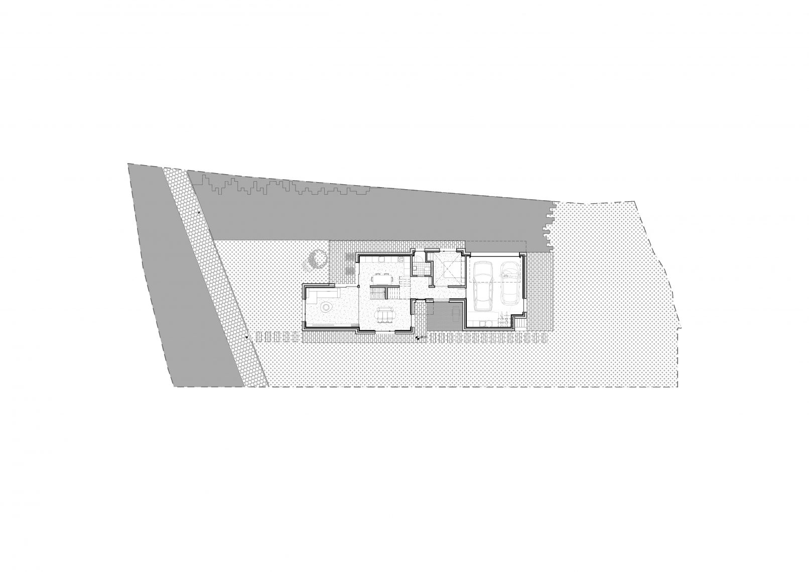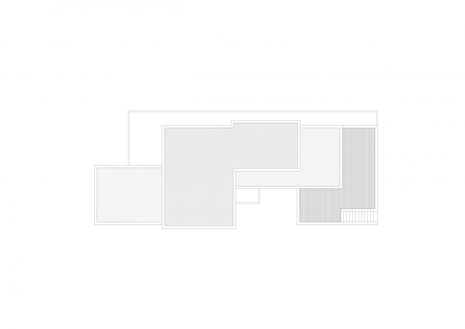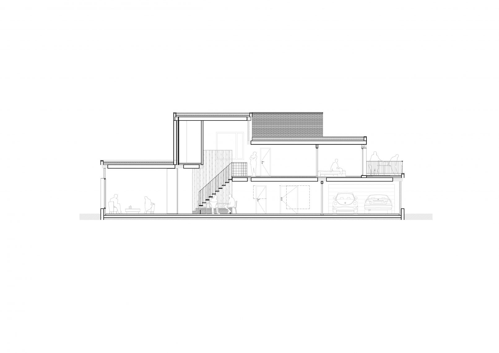 La superficie de la parcela exige una distribución en dos plantas, para poder cubrir las necesidades programáticas. Para reducir el impacto exterior del volumen, en lugar de recurrir a la habitual distribución en dos plantas, se crea un nivel intermedio, lo que permite escalonar los diferentes volúmenes y suavizar su impacto sobre la propia parcela y su entorno inmediato.