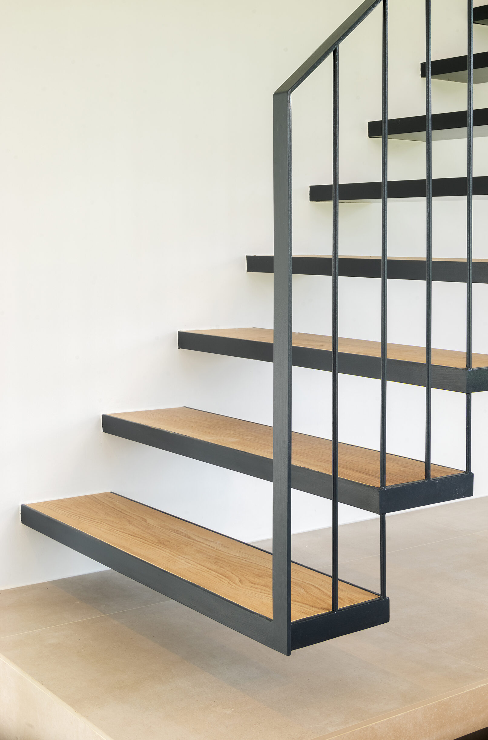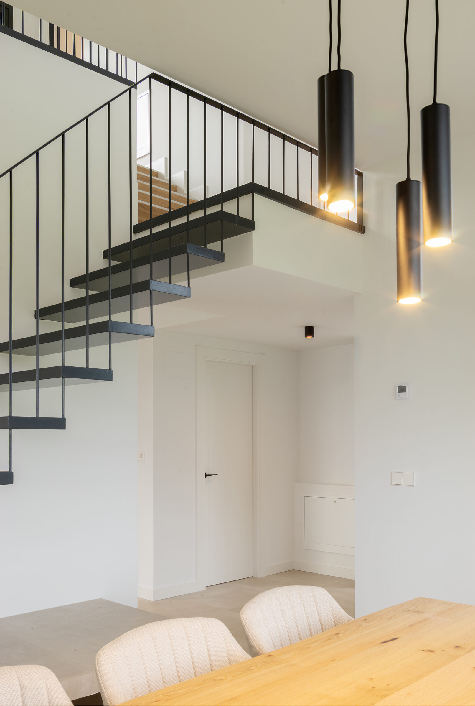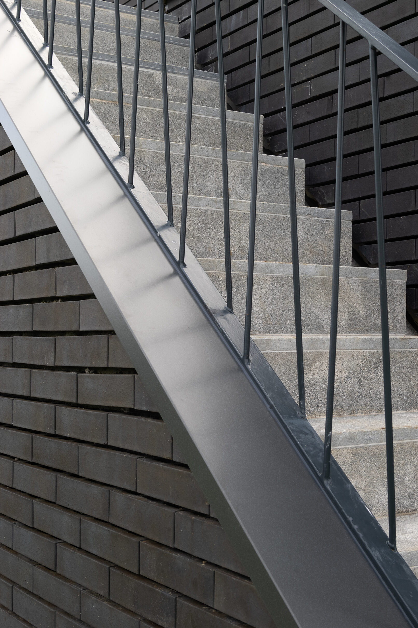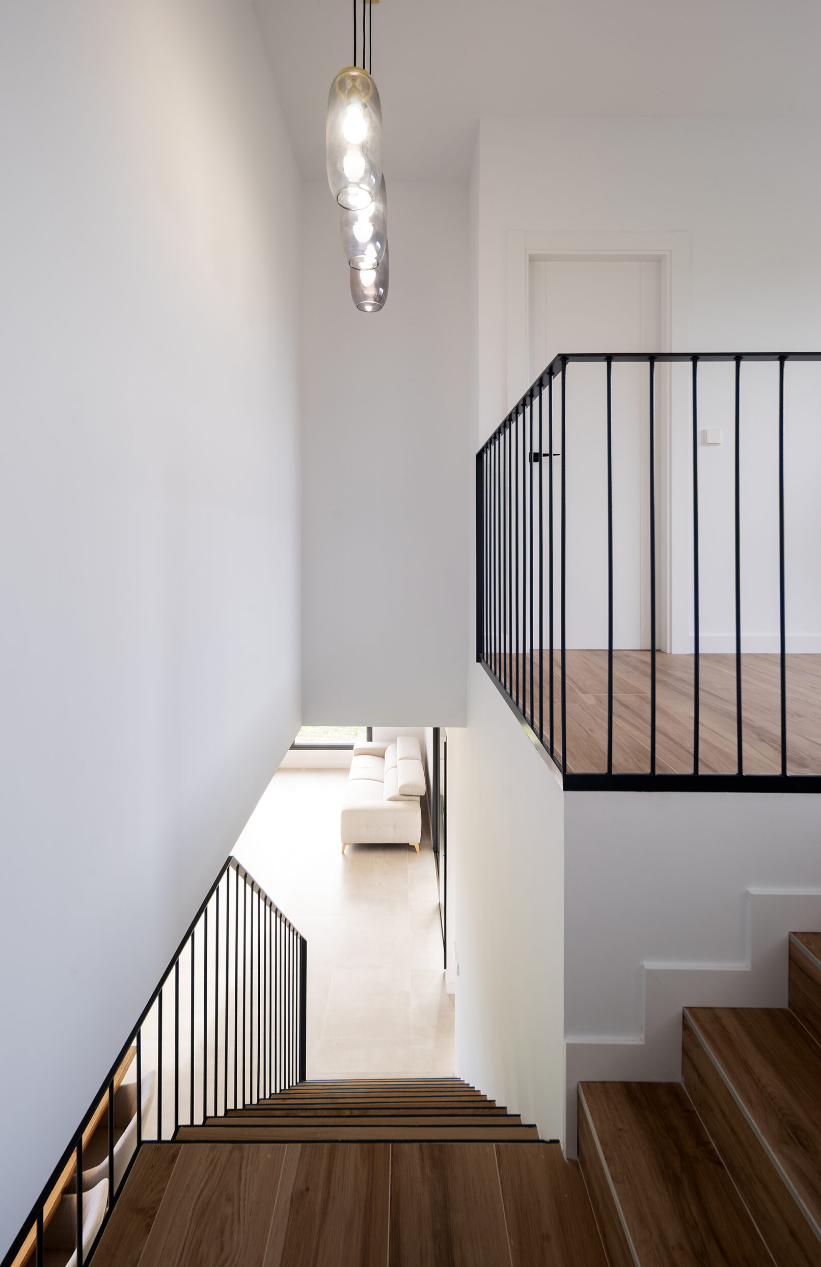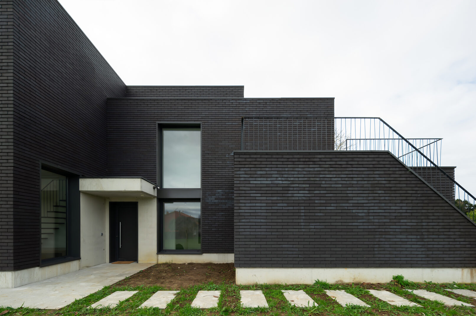 La superficie de la parcela exige una distribución en dos plantas, para poder cubrir las necesidades programáticas. Para reducir el impacto exterior del volumen, en lugar de recurrir a la habitual distribución en dos plantas, se crea un nivel intermedio, lo que permite escalonar los diferentes volúmenes y suavizar su impacto sobre la propia parcela y su entorno inmediato.