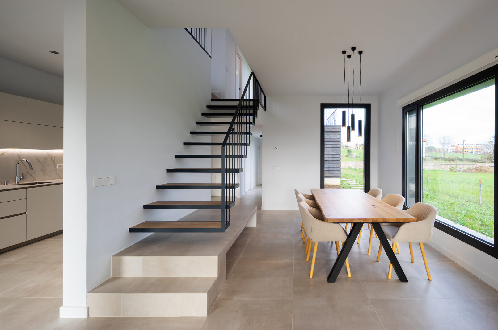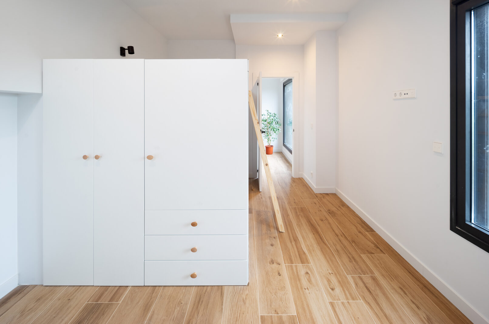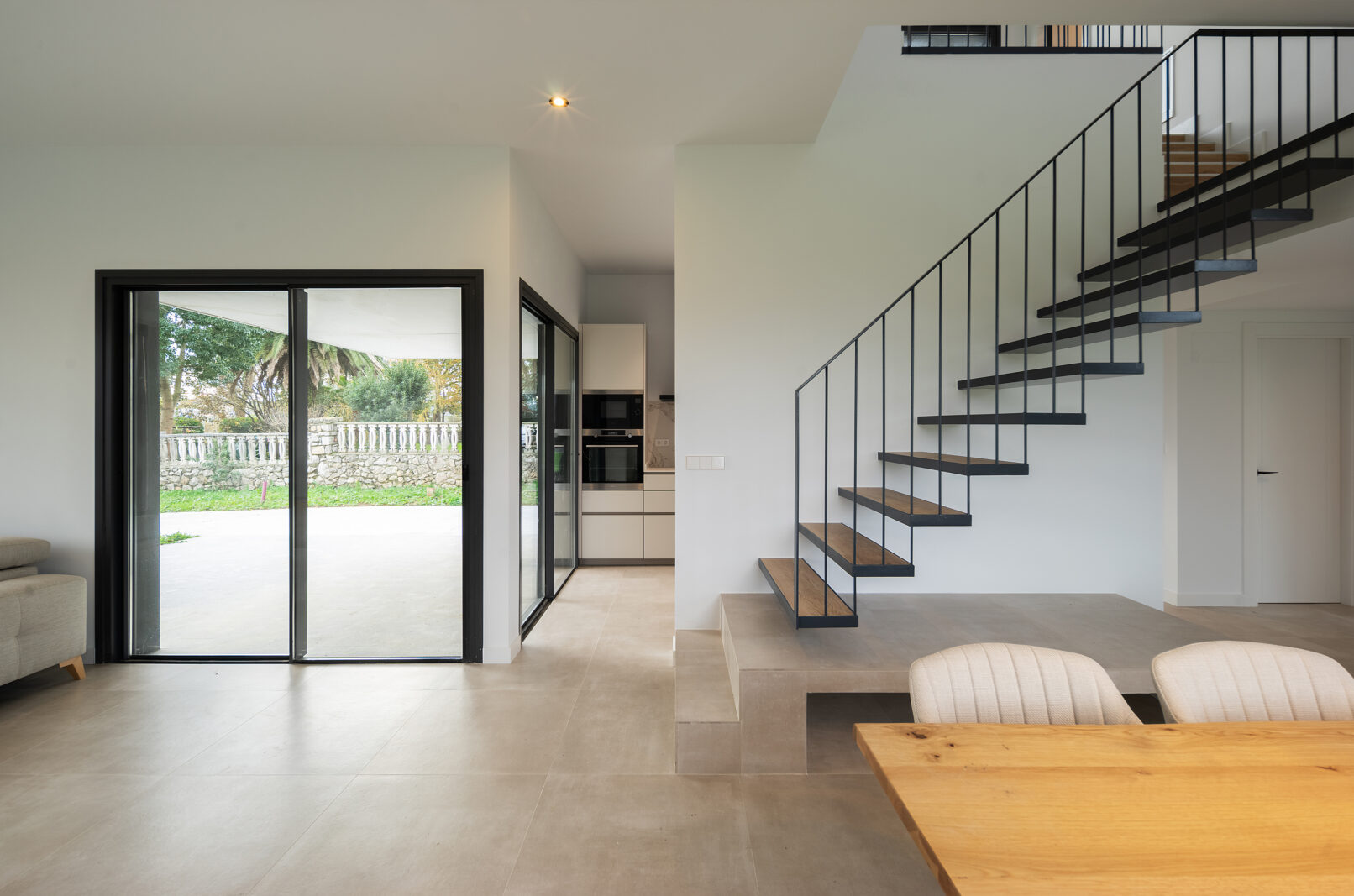 Esto lleva a diseñar una vivienda introvertida, donde se recurre a la creación de patios semi-interiores para maximizar la relación con el entorno. Estos patios funcionan como filtro entre la vivienda y su entorno, son espacios de transición, que protegen y dan privacidad a las distintas estancias. Al mismo tiempo que aumentan las posibilidades de abrir huecos al exterior, favoreciendo la iluminación natural y el soleamiento interno.