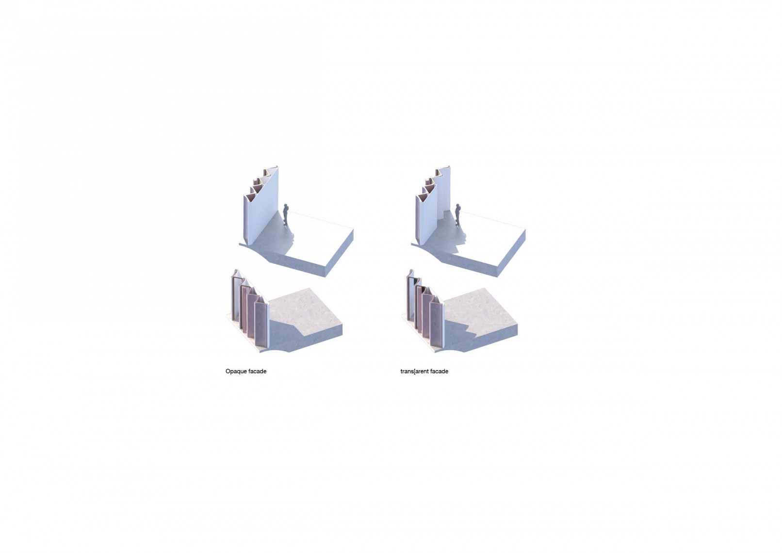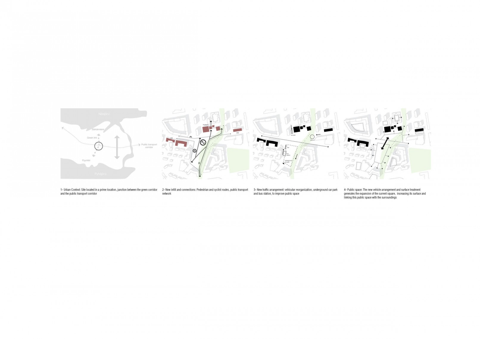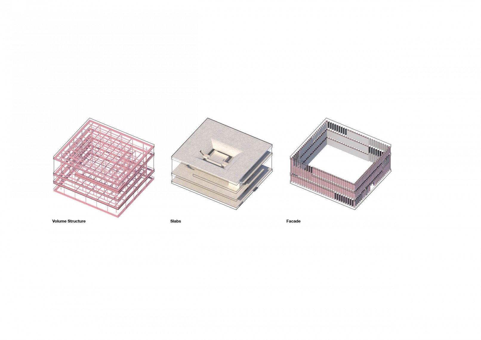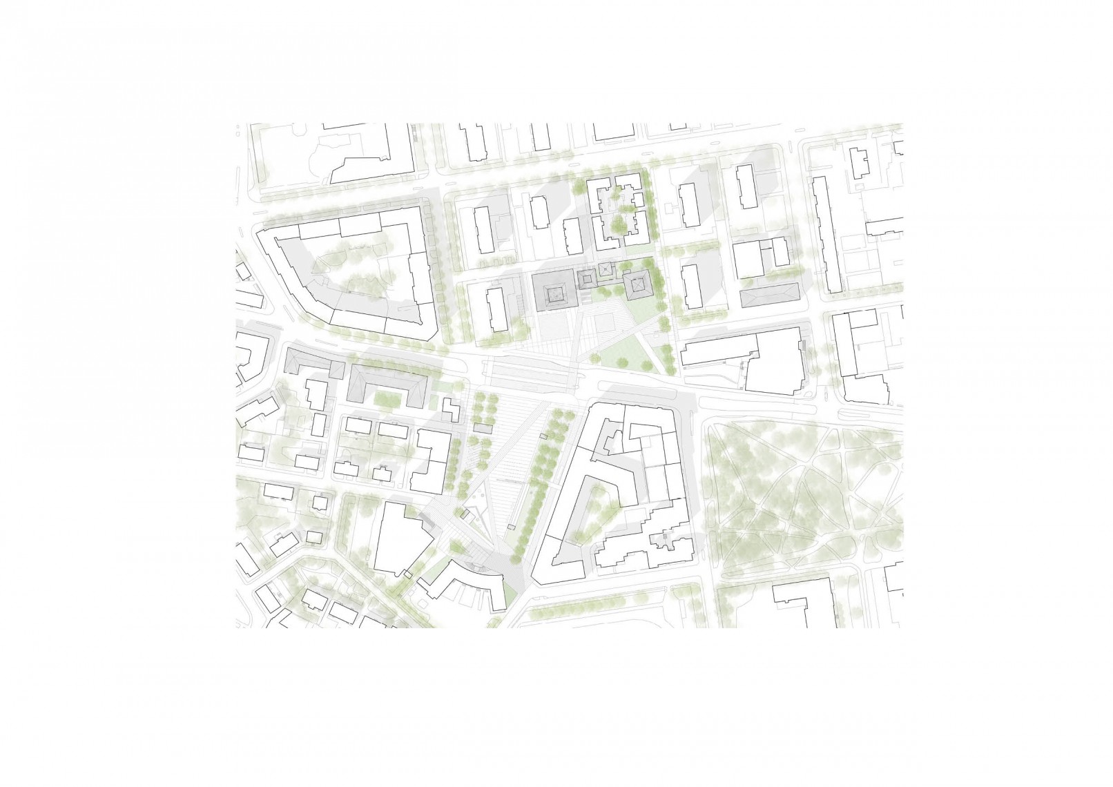 The proposal for the new museum suggests treating the current building and the extension as two equal entities, moving the new access to an independent volume between them. A neutral volume acting as entrance, connection and articulation between old and new volumes.