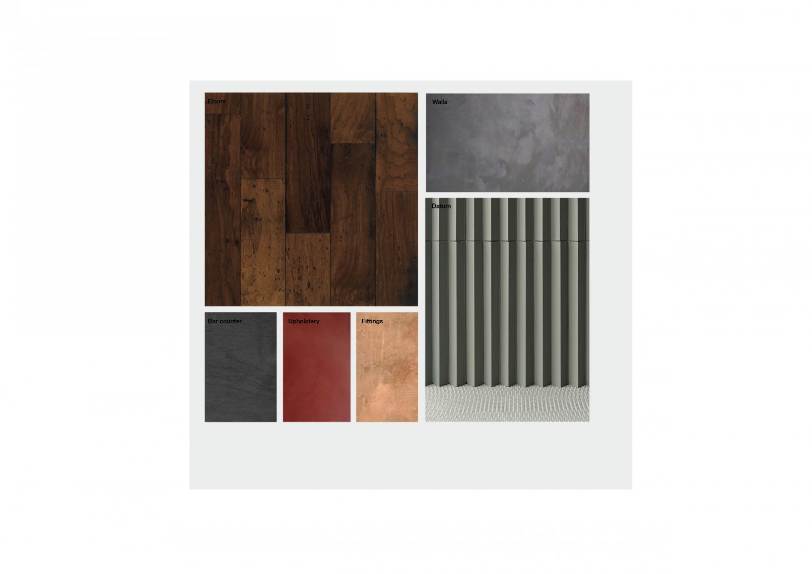 A continues datum topped with a counter and a series of stools serves as seating and standing zone, distributing public throughout the local. Architecture and finishes are functioning also as furniture, reducing the amount of elements in a limited space.