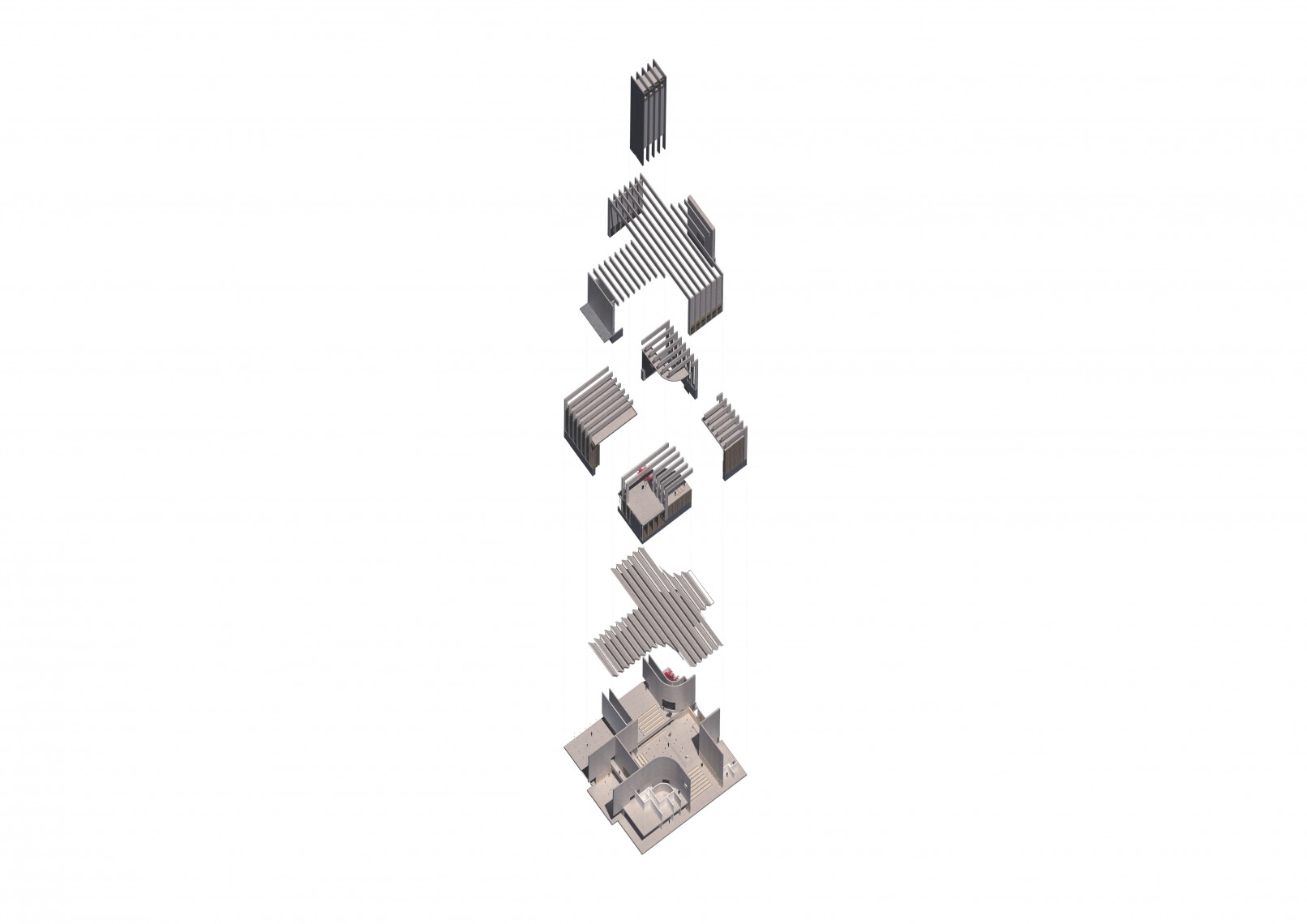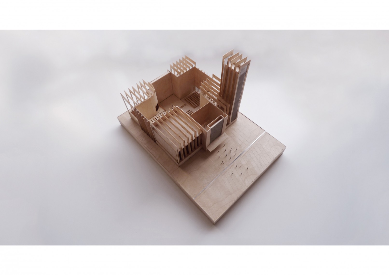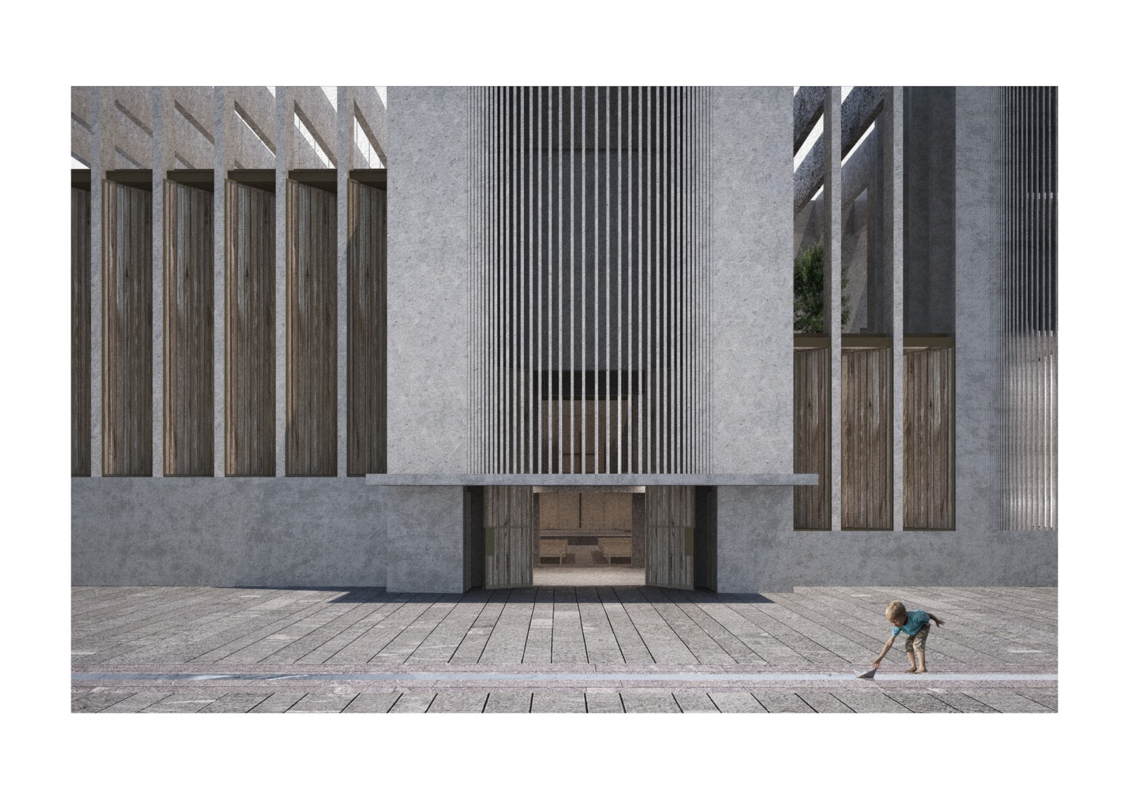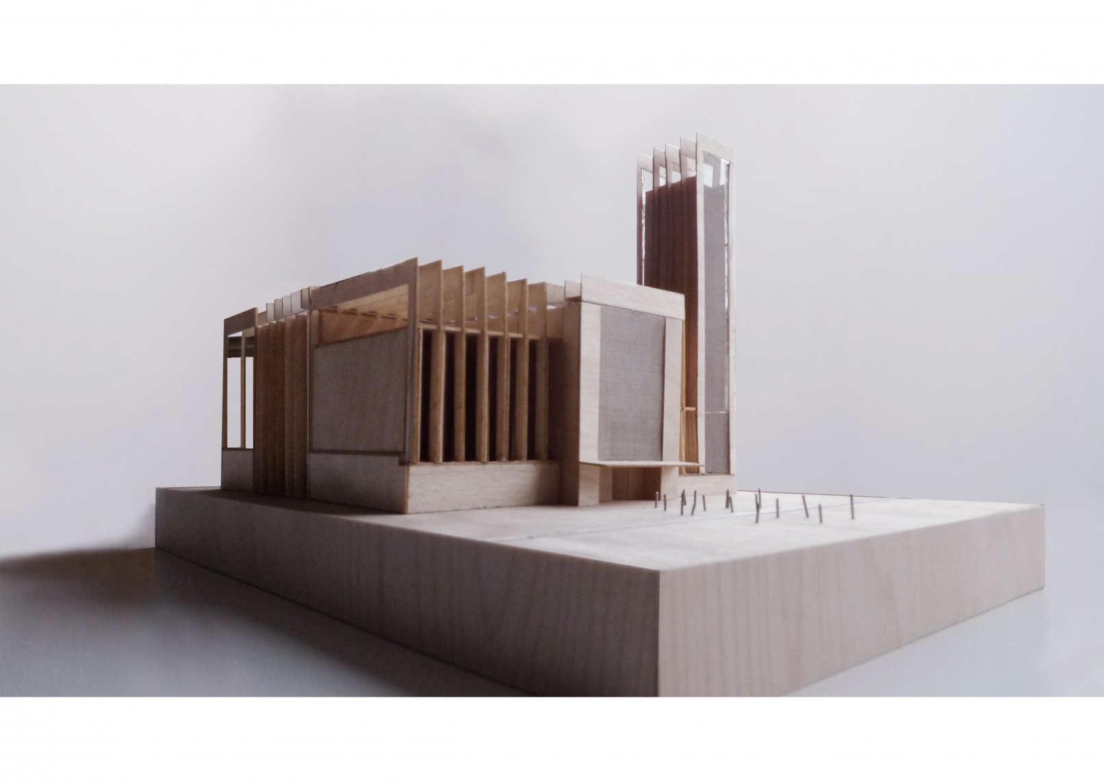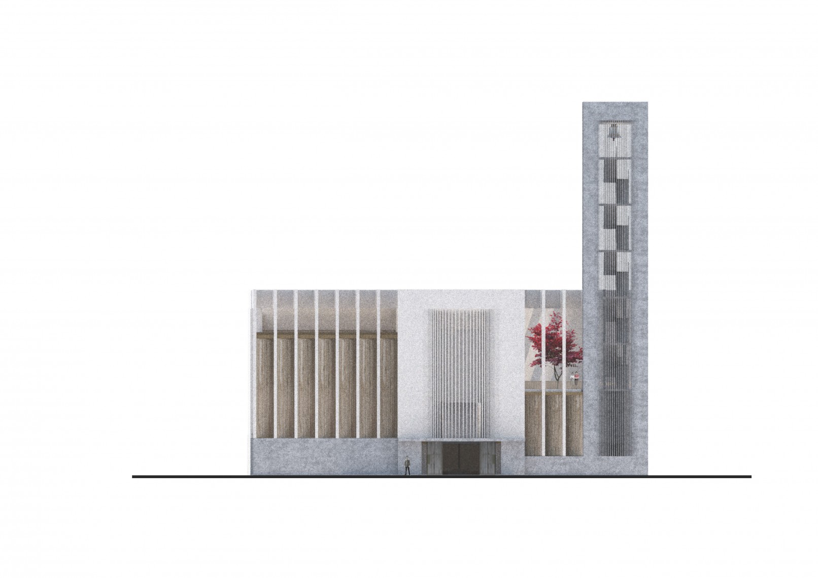 The competition brief asked for a new parish church to replace the former construction burned a few years ago. Based on these sensitive premises the new proposal maintains a continue dialogue with the remains, its location, dimensions and shape are influenced by the pre-existing construction.